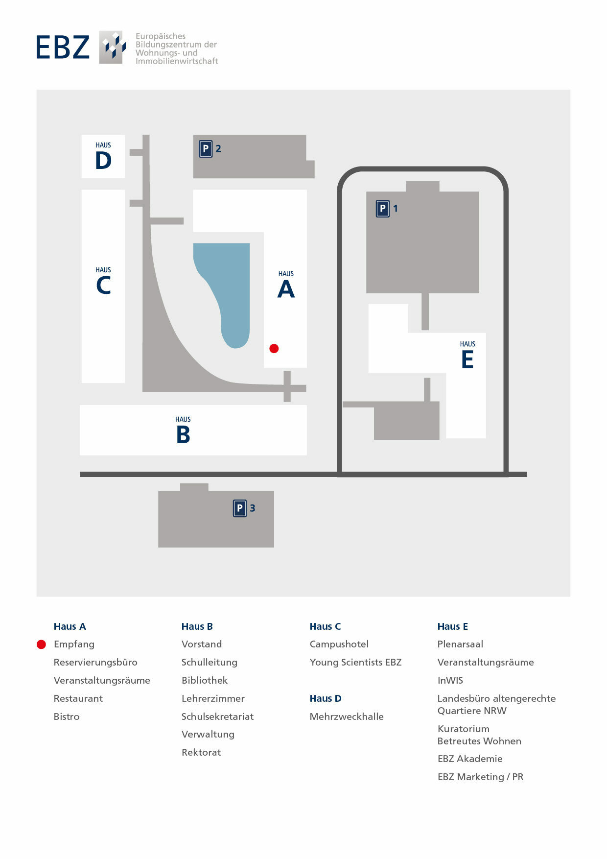 Das EBZ liegt nur wenige Minuten von der Bochumer Innenstadt sowie vom Bochumer Hauptbahnhof entfernt. Ob mit öffentlichen Verkehrsmitteln oder mit dem eigenen PkW – wir sind aus allen Richtungen bestens erreichbar.